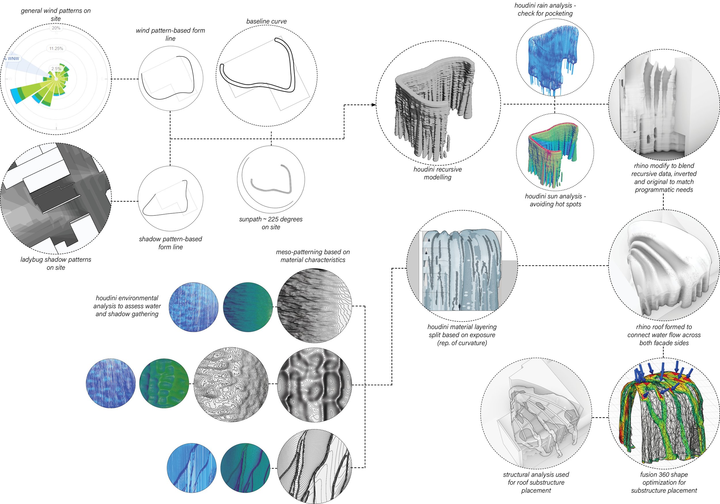design logic from site information to form to glass patterning based on microenvironments